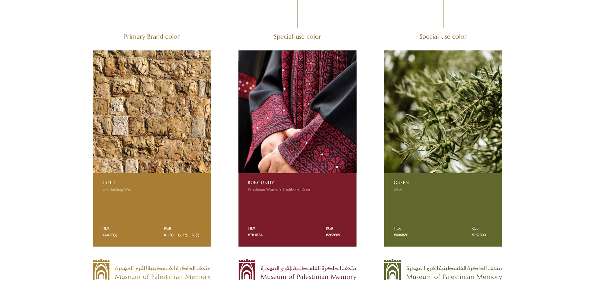Explore the comprehensive brand identity and website design project for the 'Museum Of Palestinian Memory.'
